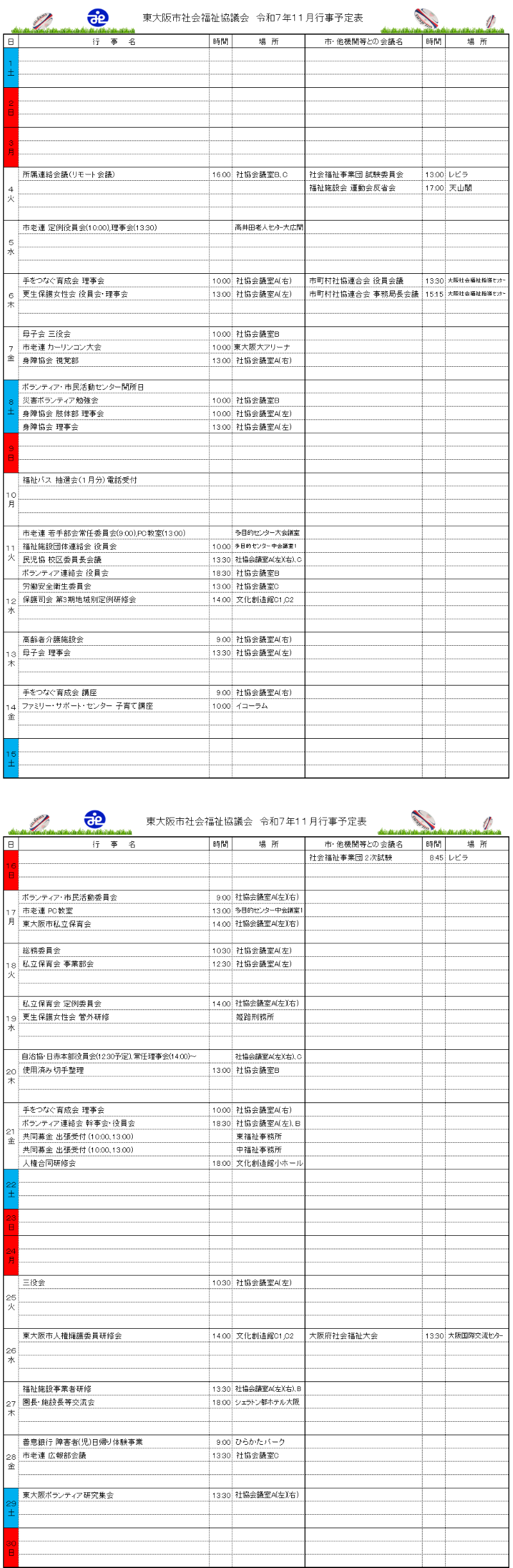 月間行事予定表