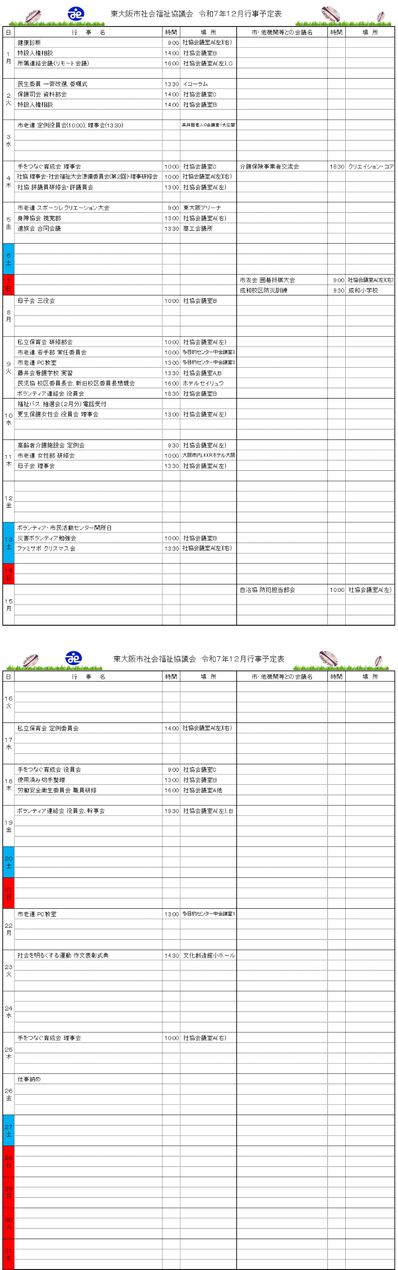 月間行事予定表