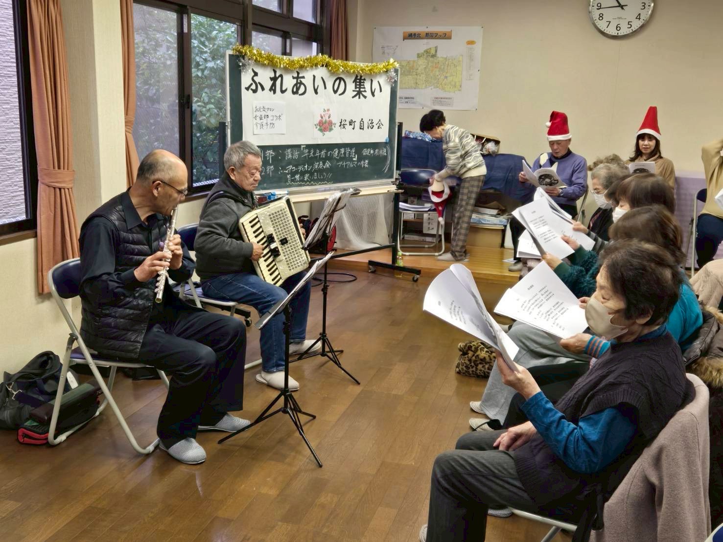 その後、「高石アコーディオン同窓会 プチ・アルマ」さんにお越しいただき、アコーディオンとフルートの演奏を鑑賞しました!昭和の名曲などたくさん演奏をしていただきましたよ。