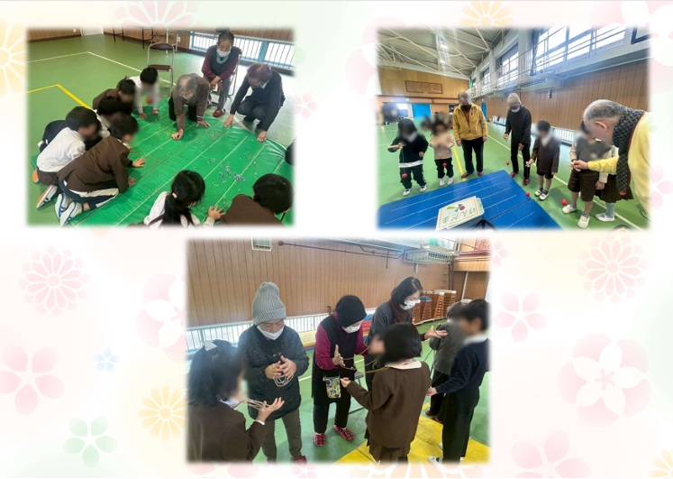 地域の方に教えてもらいながら、こどもたちは初めて触れる遊びに挑戦し、「できた!」と嬉しそうな笑顔を見せてくれました。