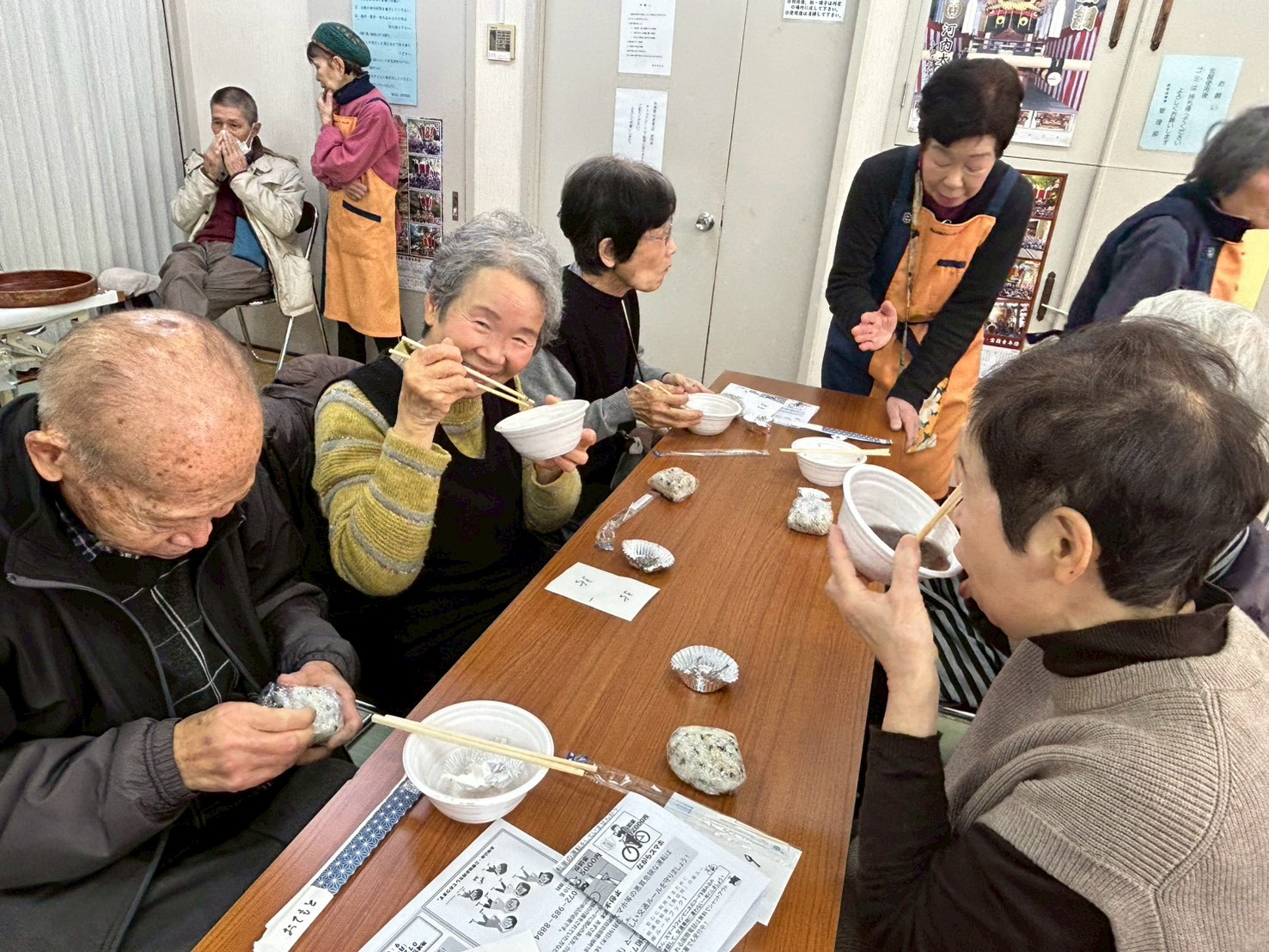 あたたかいぜんざいとおにぎりを囲みながら、新年のあいさつや近況報告など自然と会話が広がり、心も身体もぽかぽかな和やかなひとときでしたよ😊