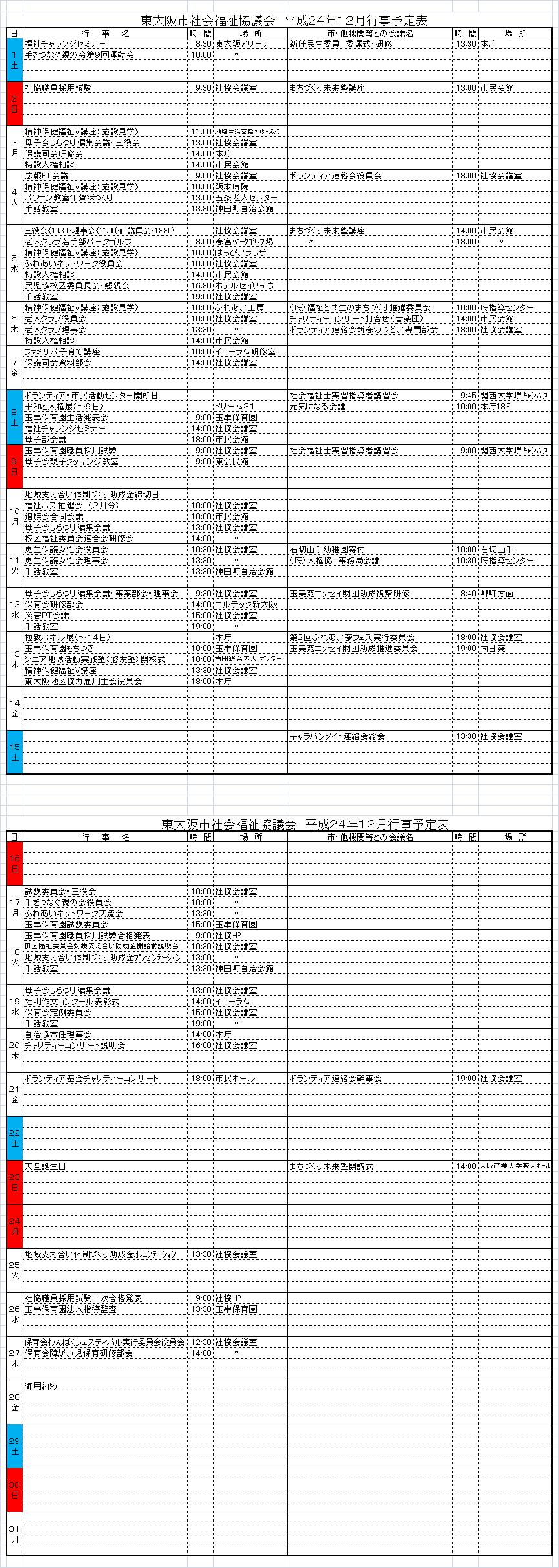 月間行事予定表