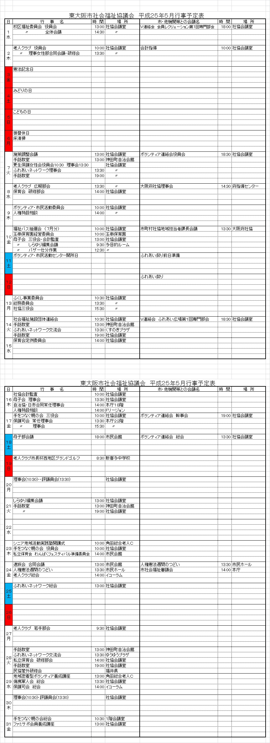 月間行事予定表