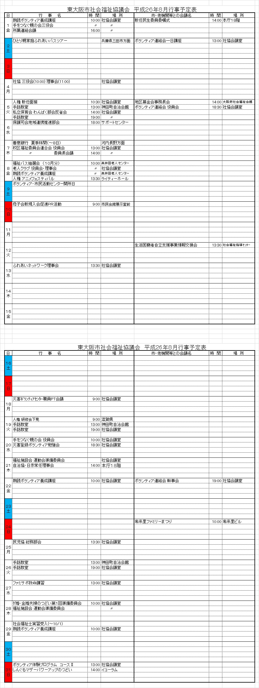 月間行事予定表