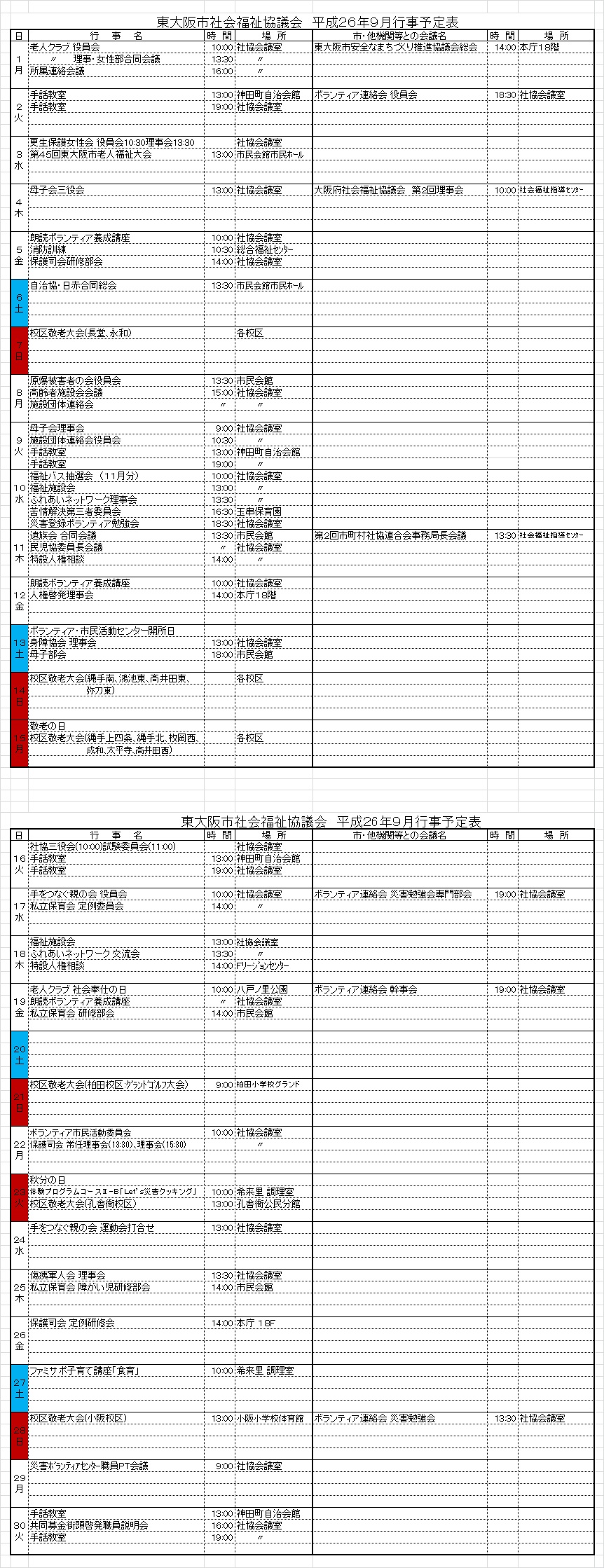 月間行事予定表