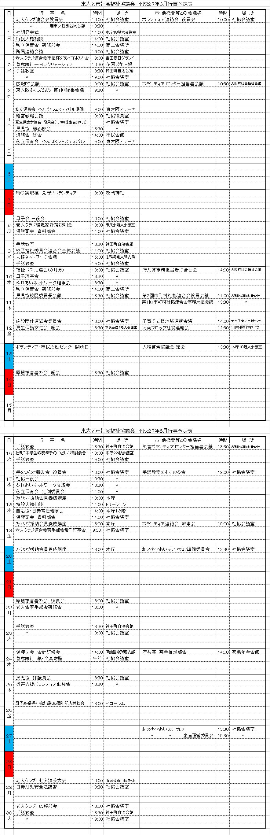 月間行事予定表