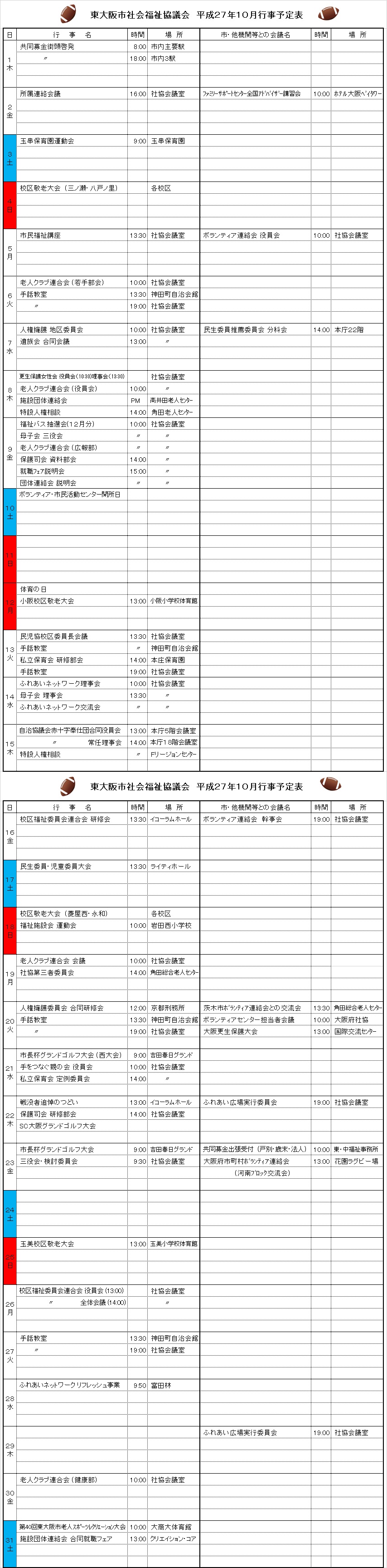 月間行事予定表