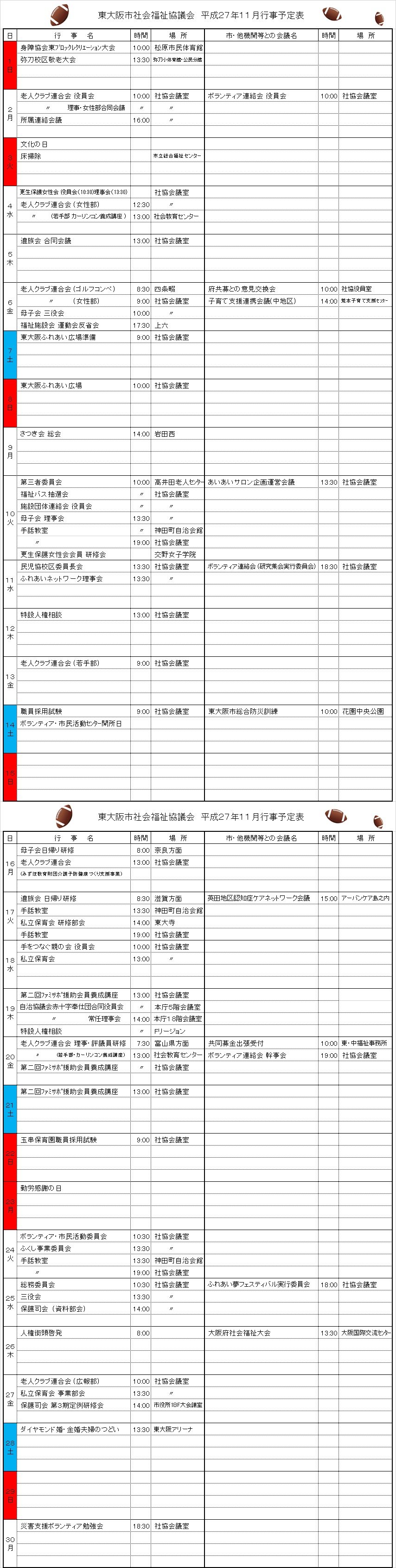 月間行事予定表