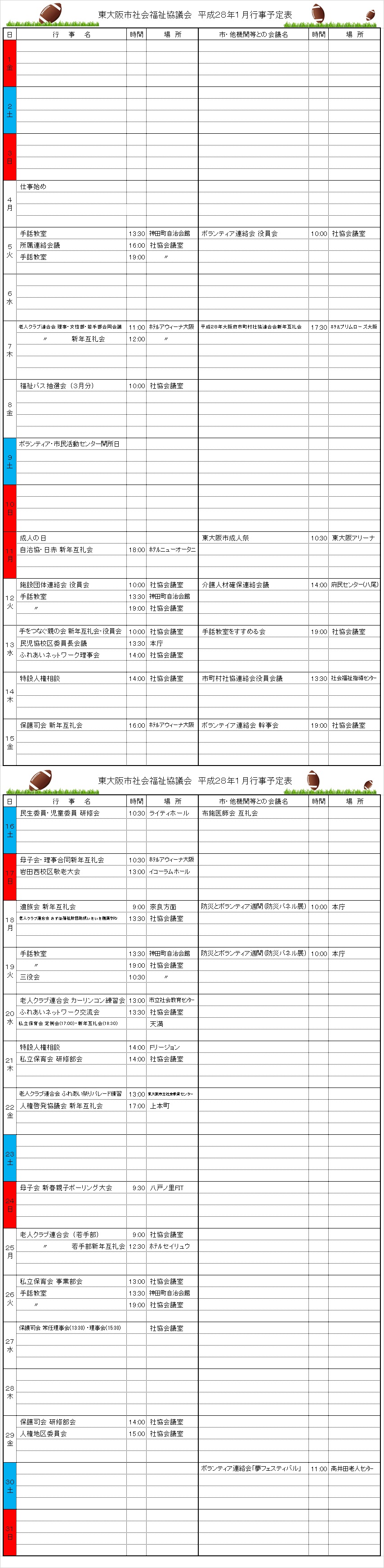 月間行事予定表