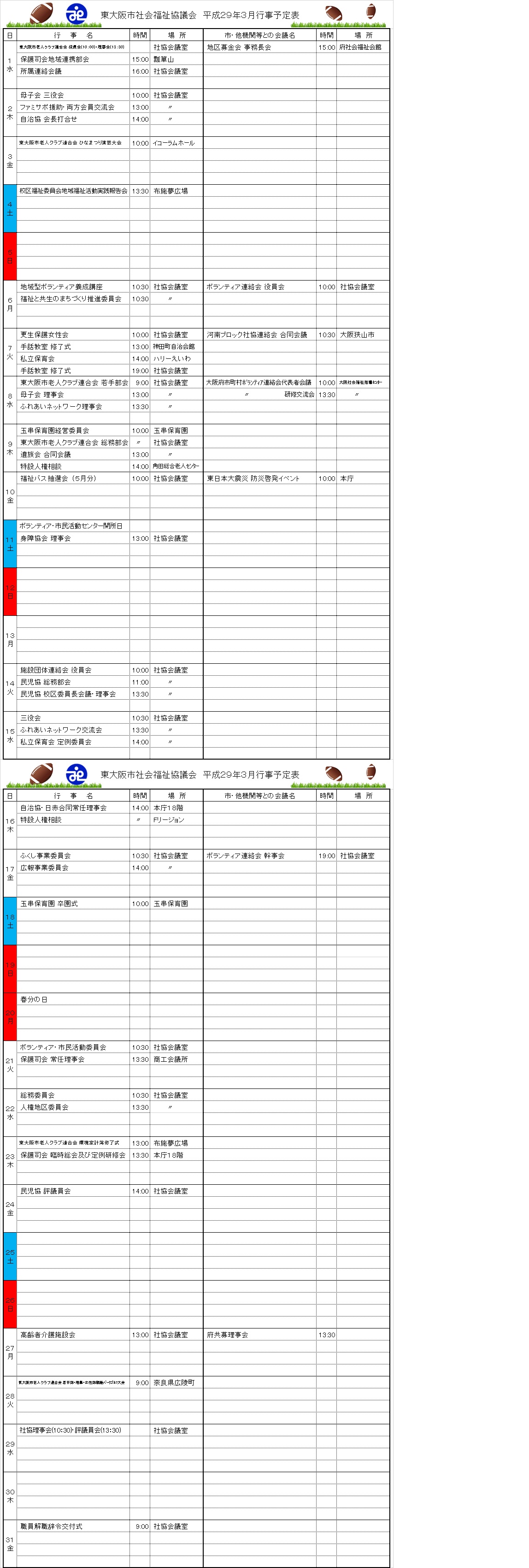月間行事予定表