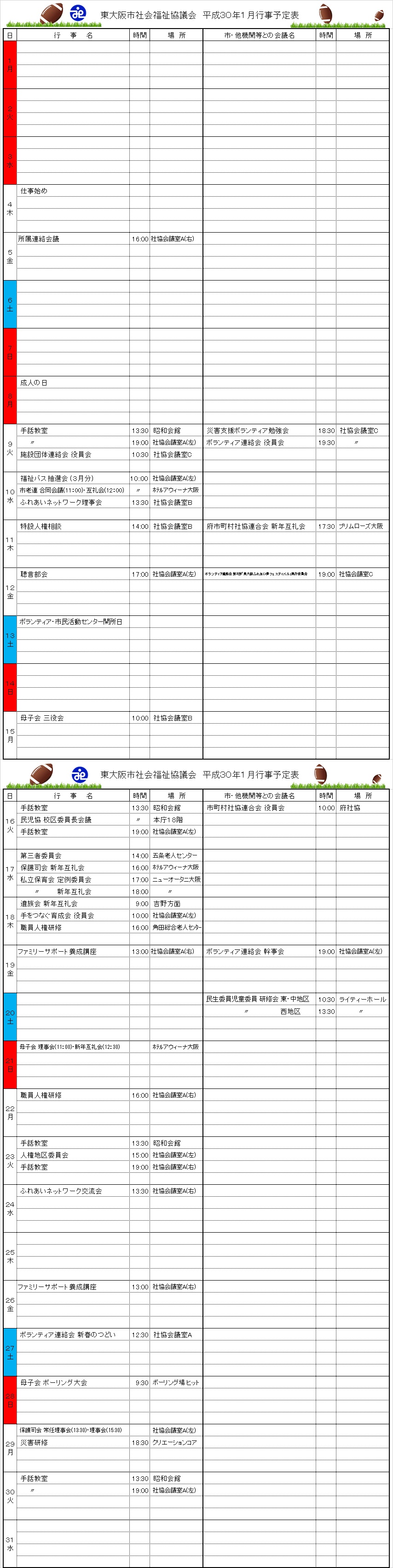 月間行事予定表