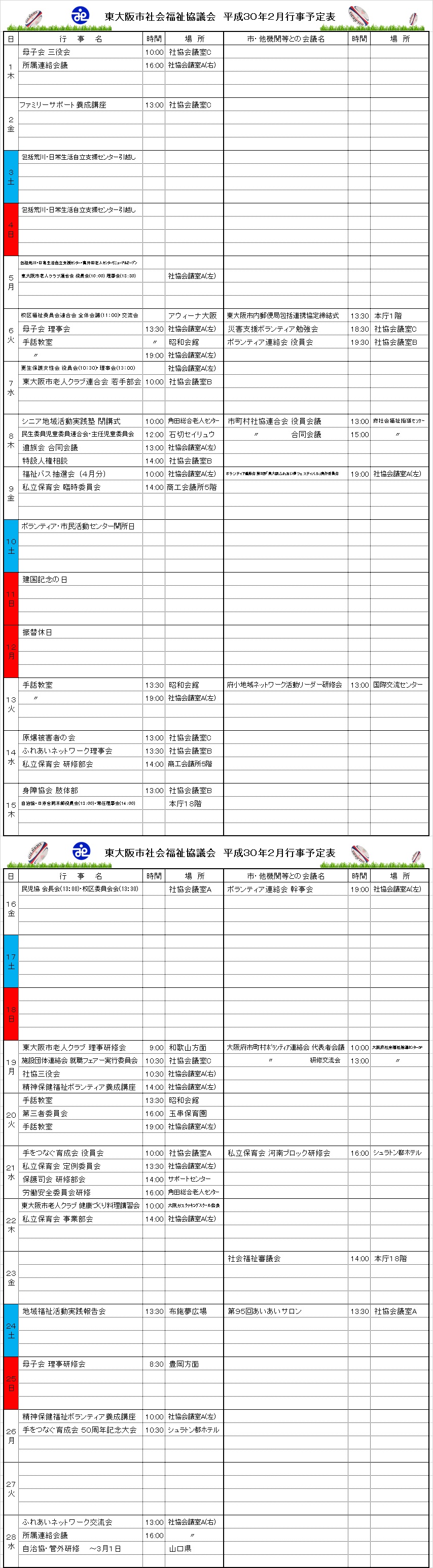 月間行事予定表