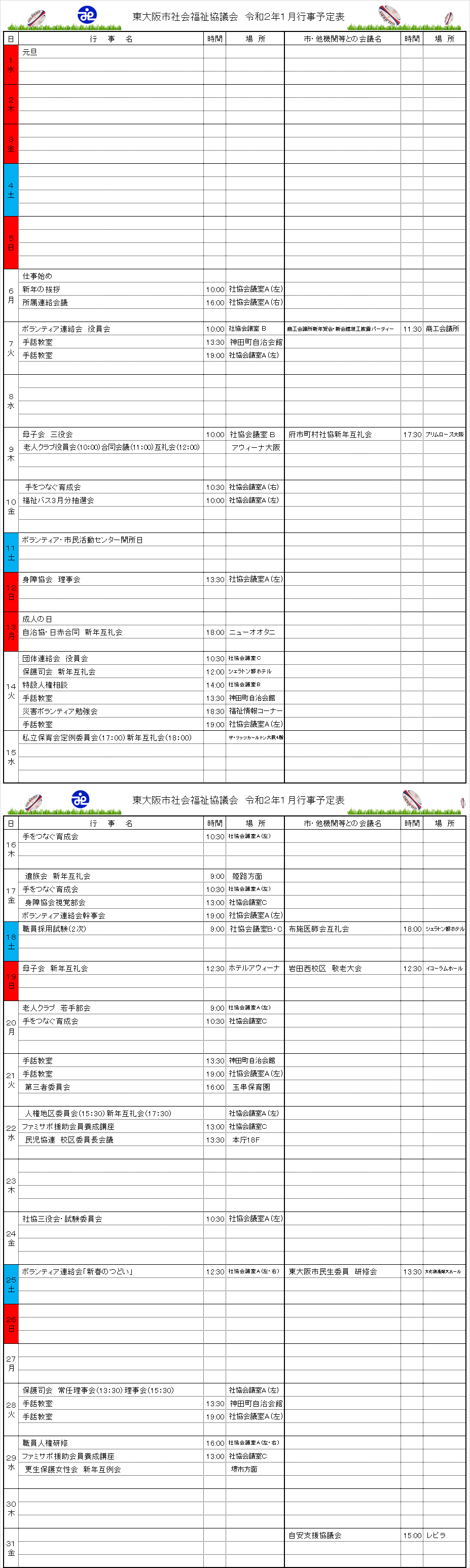 月間行事予定表