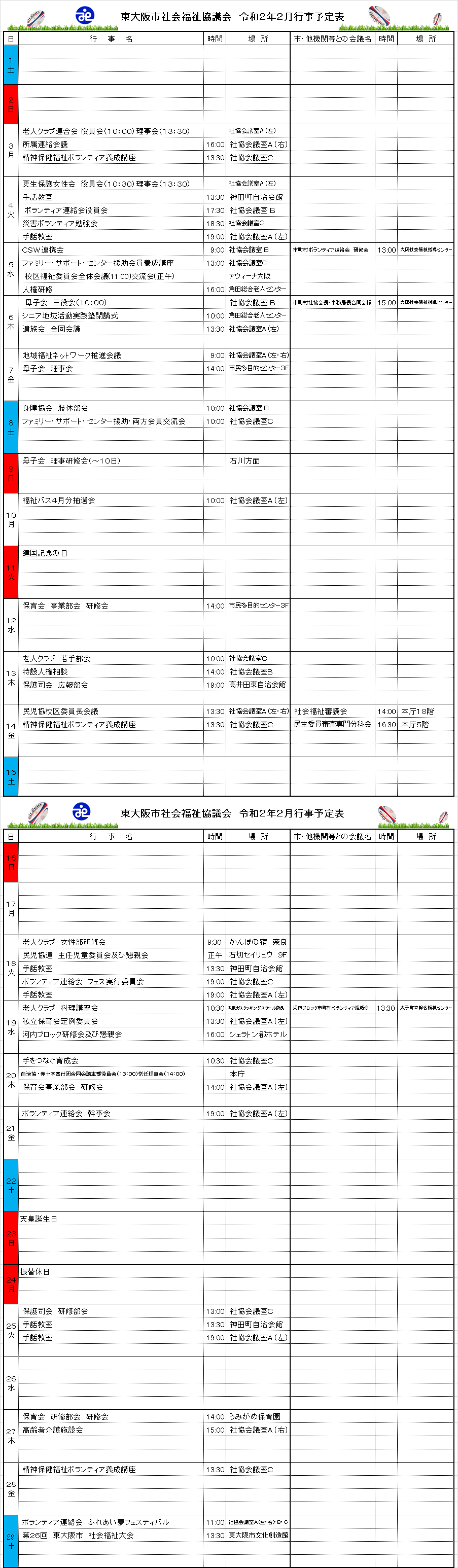 月間行事予定表