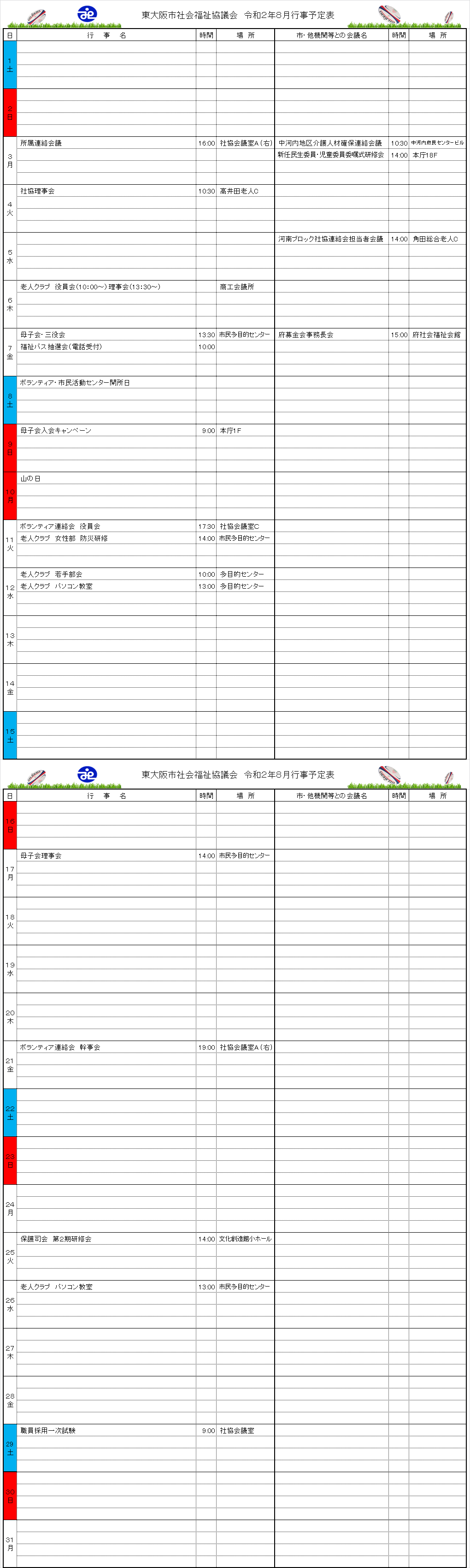 月間行事予定表