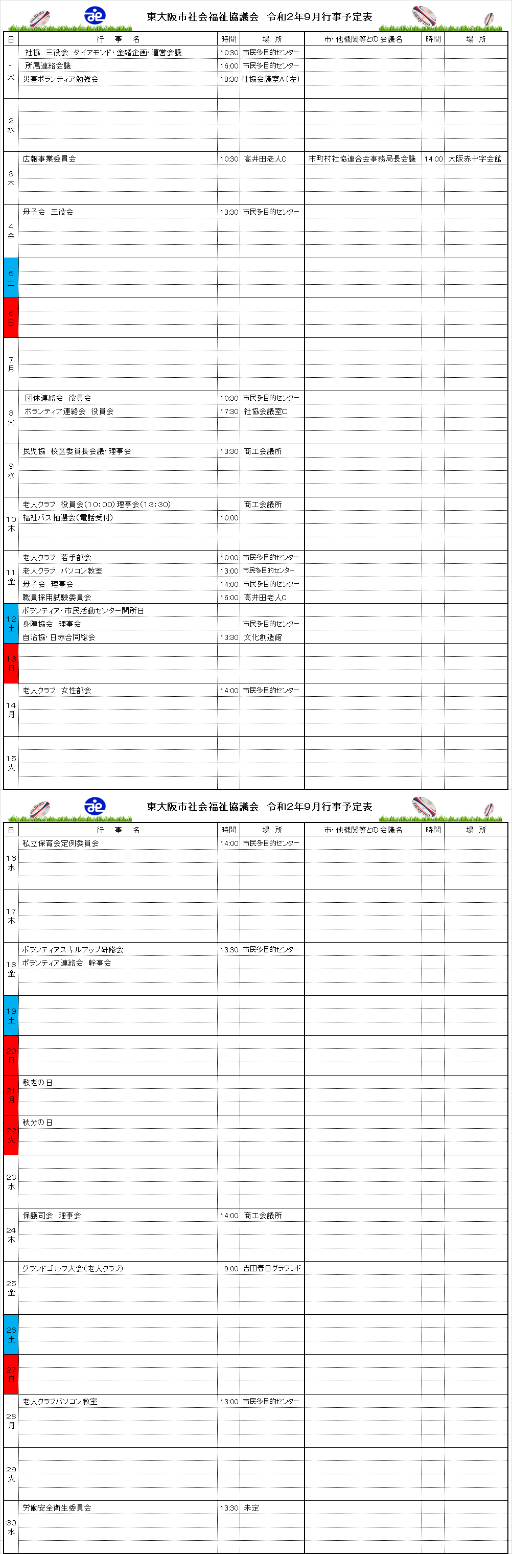 月間行事予定表