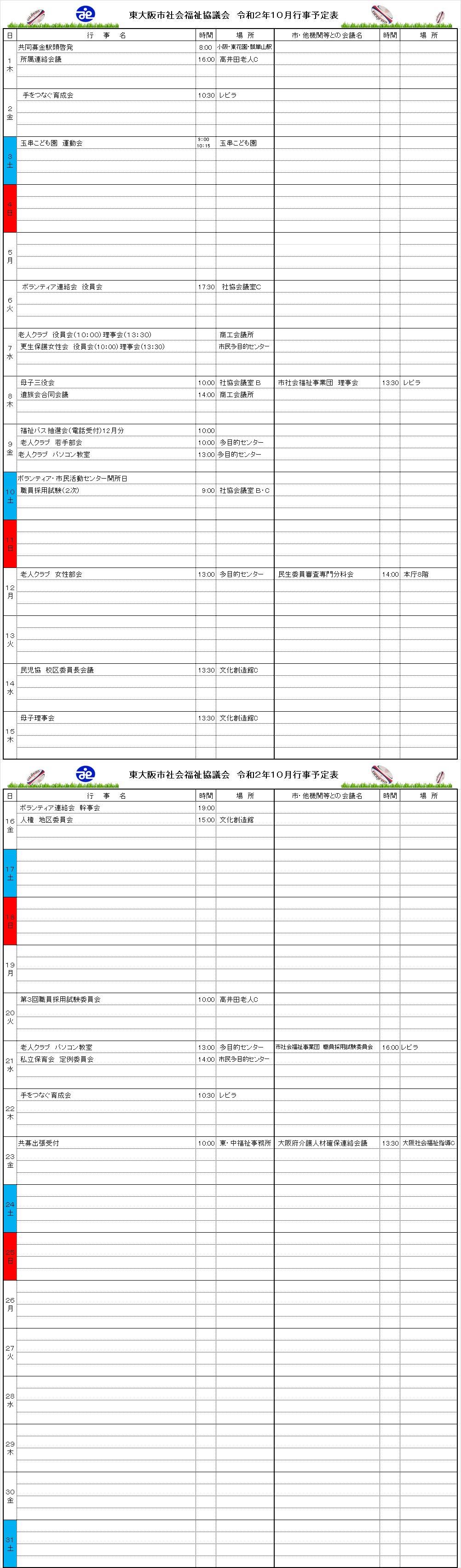 月間行事予定表