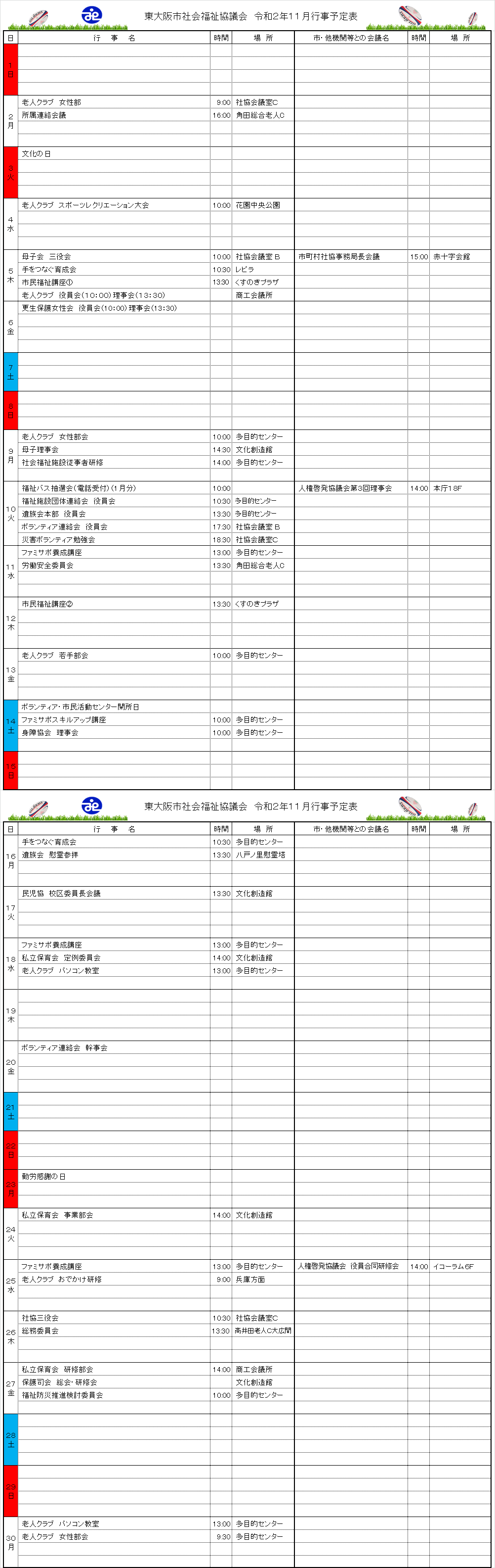 月間行事予定表