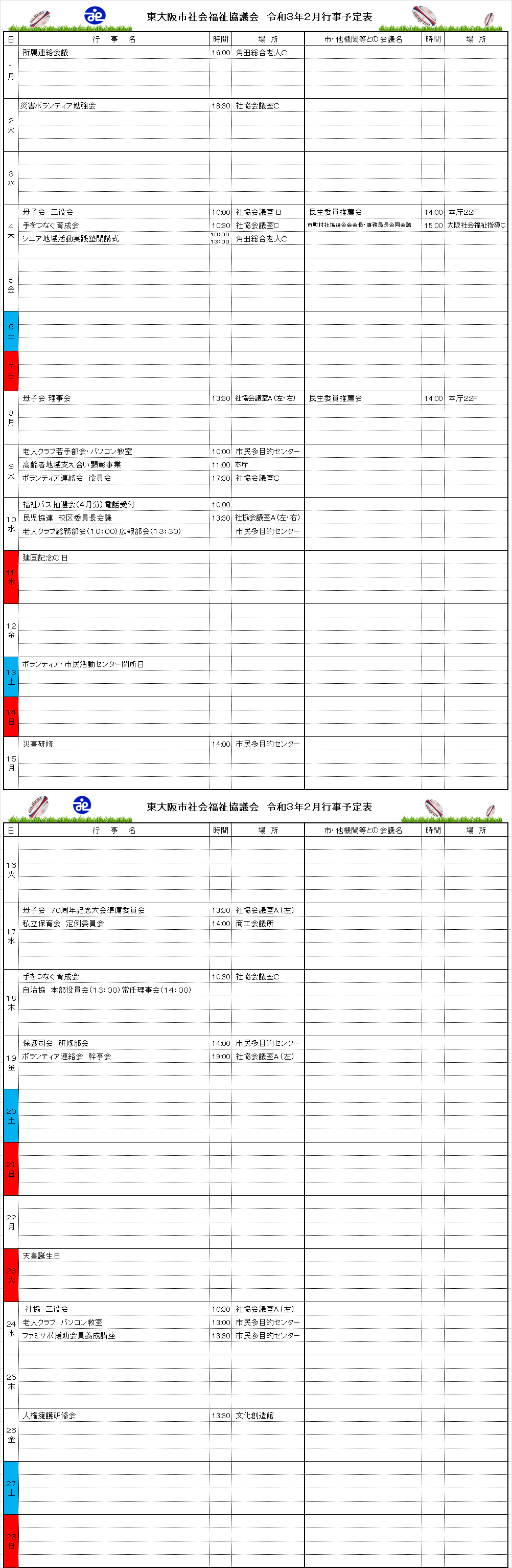 月間行事予定表