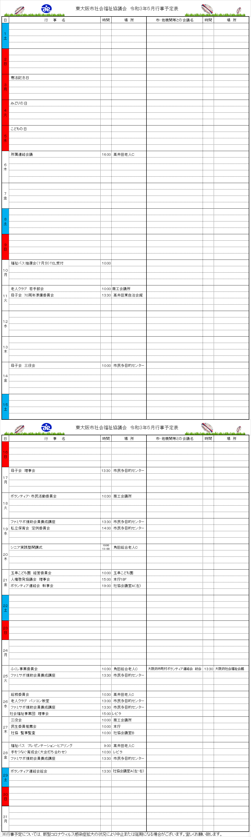 月間行事予定表