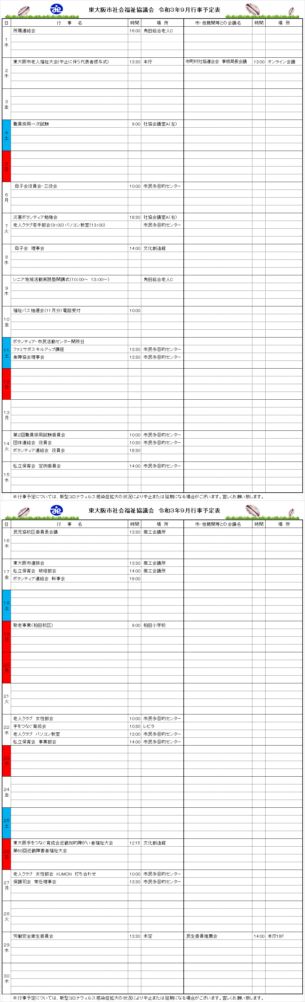 月間行事予定表