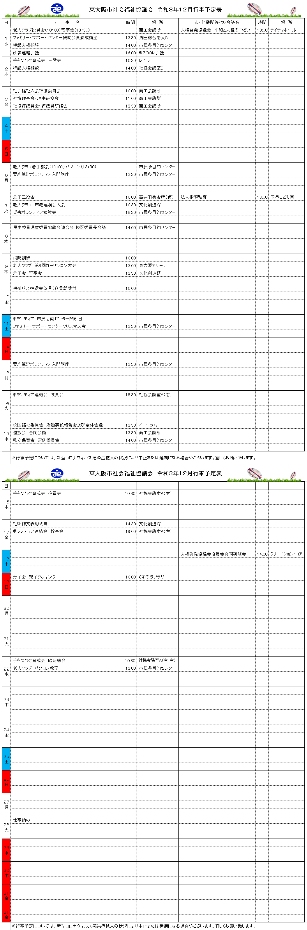 月間行事予定表
