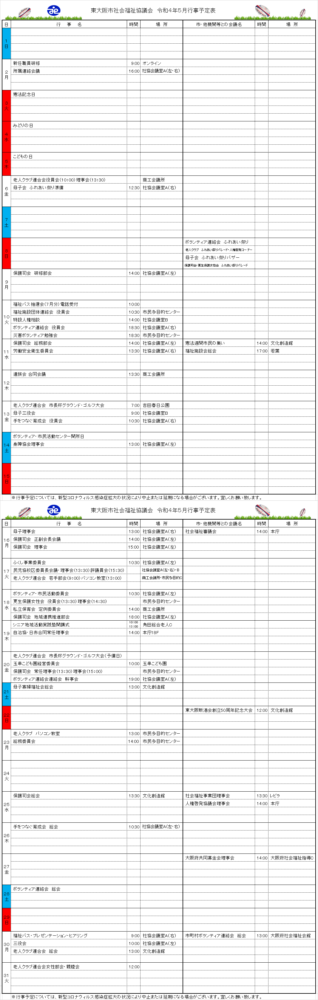 月間行事予定表