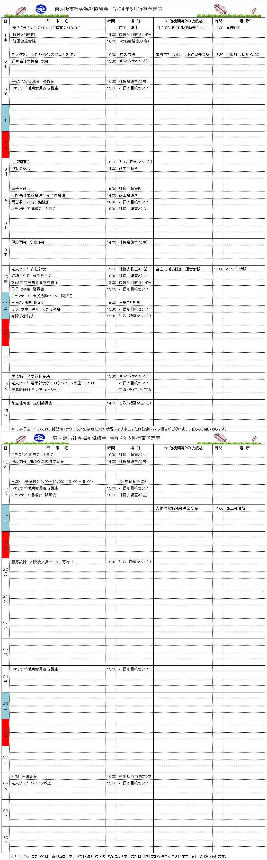 月間行事予定表