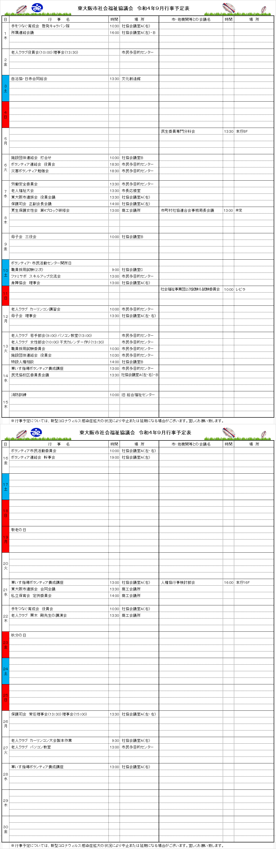 月間行事予定表