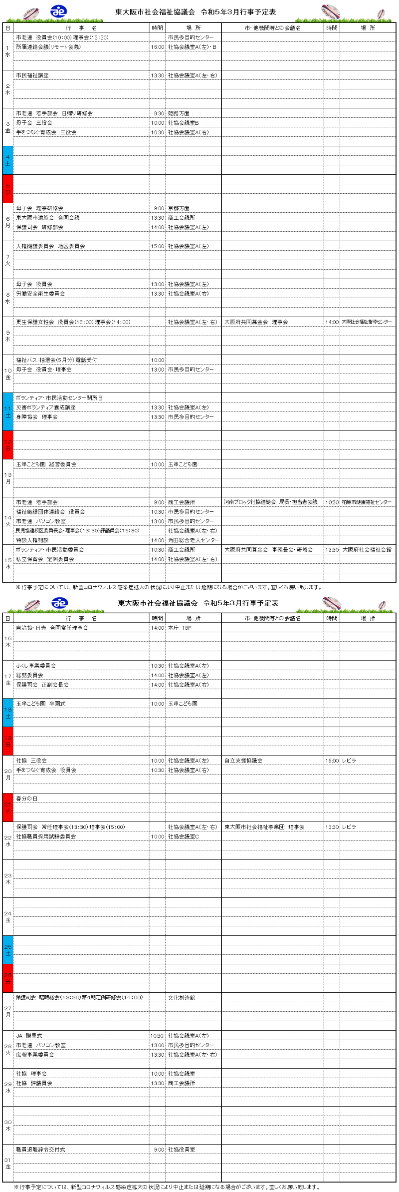 月間行事予定表
