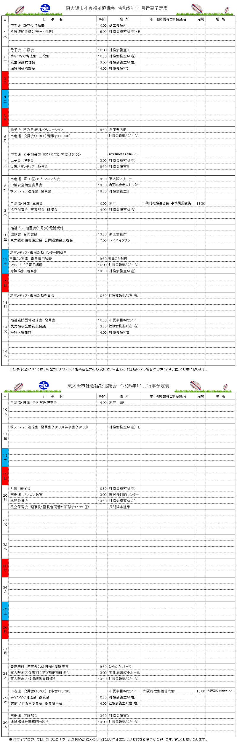 月間行事予定表