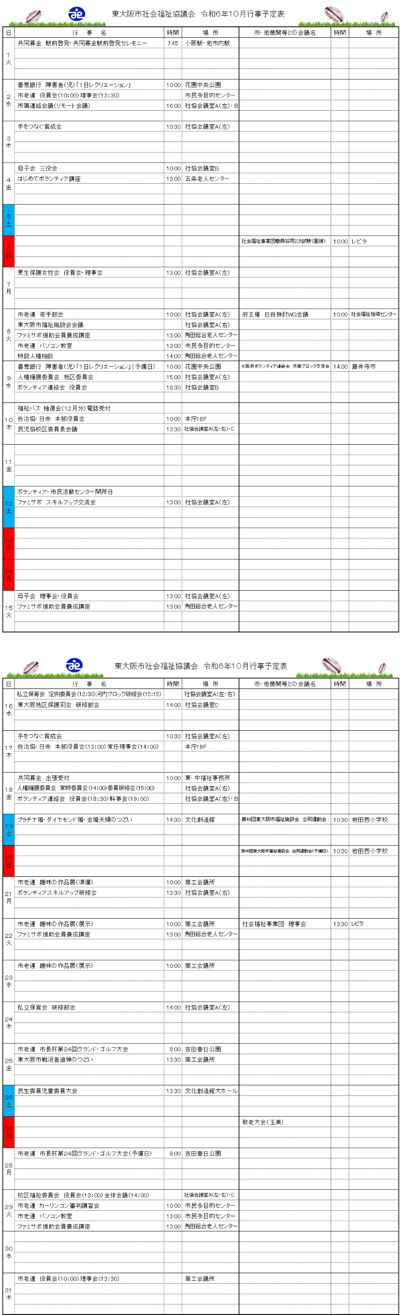 月間行事予定表