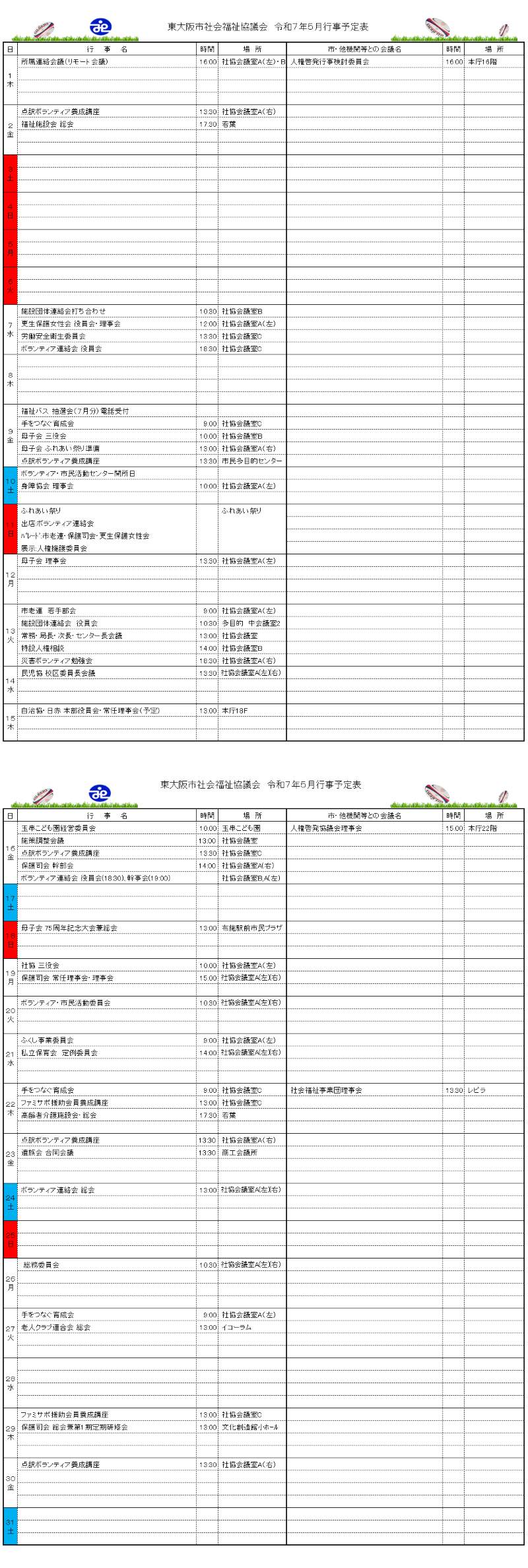 月間行事予定表