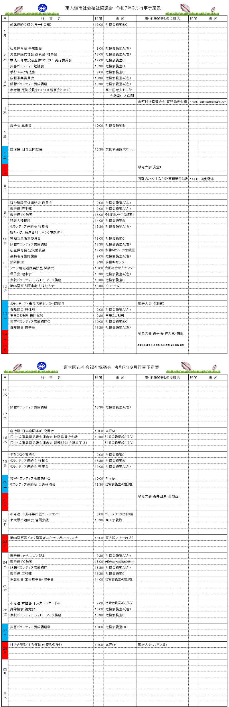 月間行事予定表