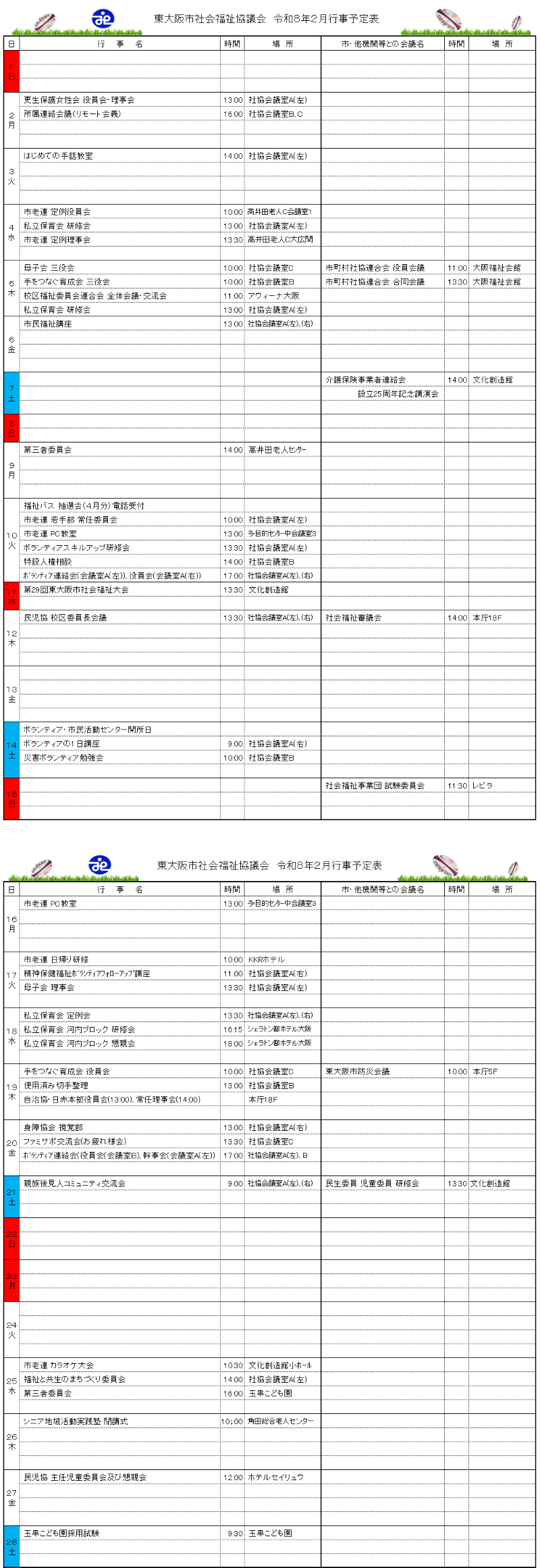 月間行事予定表