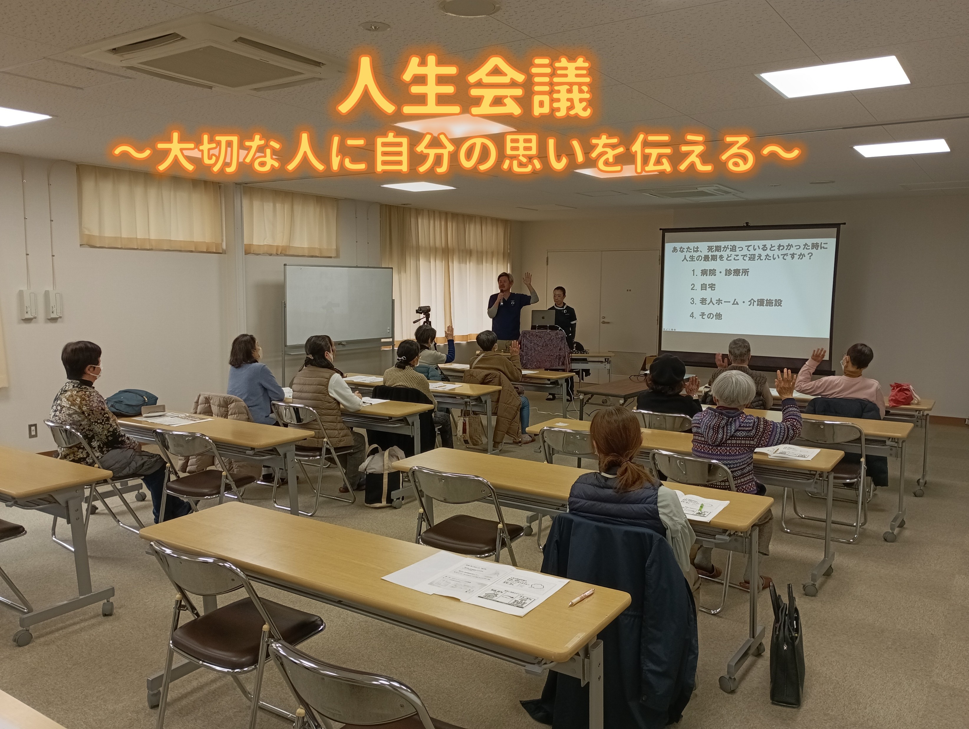 かわべクリニックの先生をお呼びし「人生会議」をしていただきました。“大切な人に自分の思いを伝える”ということがどれだけ大事なことか。また、“自分の思いは日々変化してくもので、その時その時の思いを大切にする”ということが人生を豊かに、そして自分のためにも家族のためにもなる。そのような気づきを得られました。