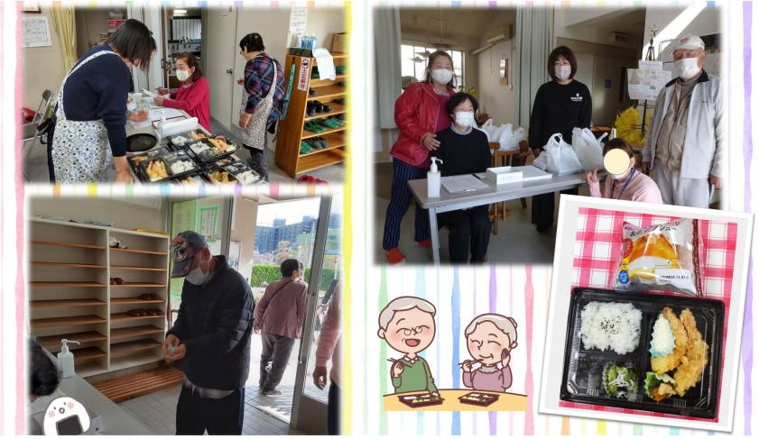 参加の方は、自治会館へお弁当🍱を受け取りに!出向くことが困難な方は、お届けをさせて頂きました🏠皆さんお弁当を受け取り、近況や体調のことなど世間話をして帰られます。久しぶりに会う方も頻繁に顔を合わせる方も、お弁当を楽しみに談笑して帰られました☺