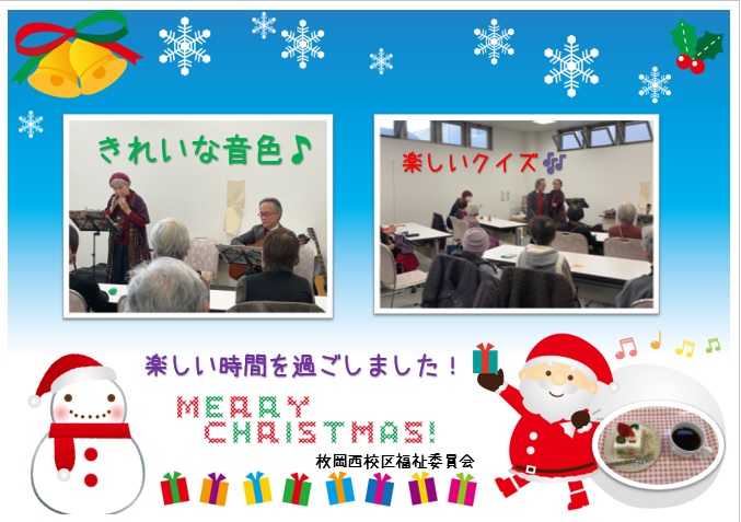 メリークリスマスは少し過ぎてしまいましたが、今回は意岐部校区民生委員会主催のクリスマス会の様子をお届けします!