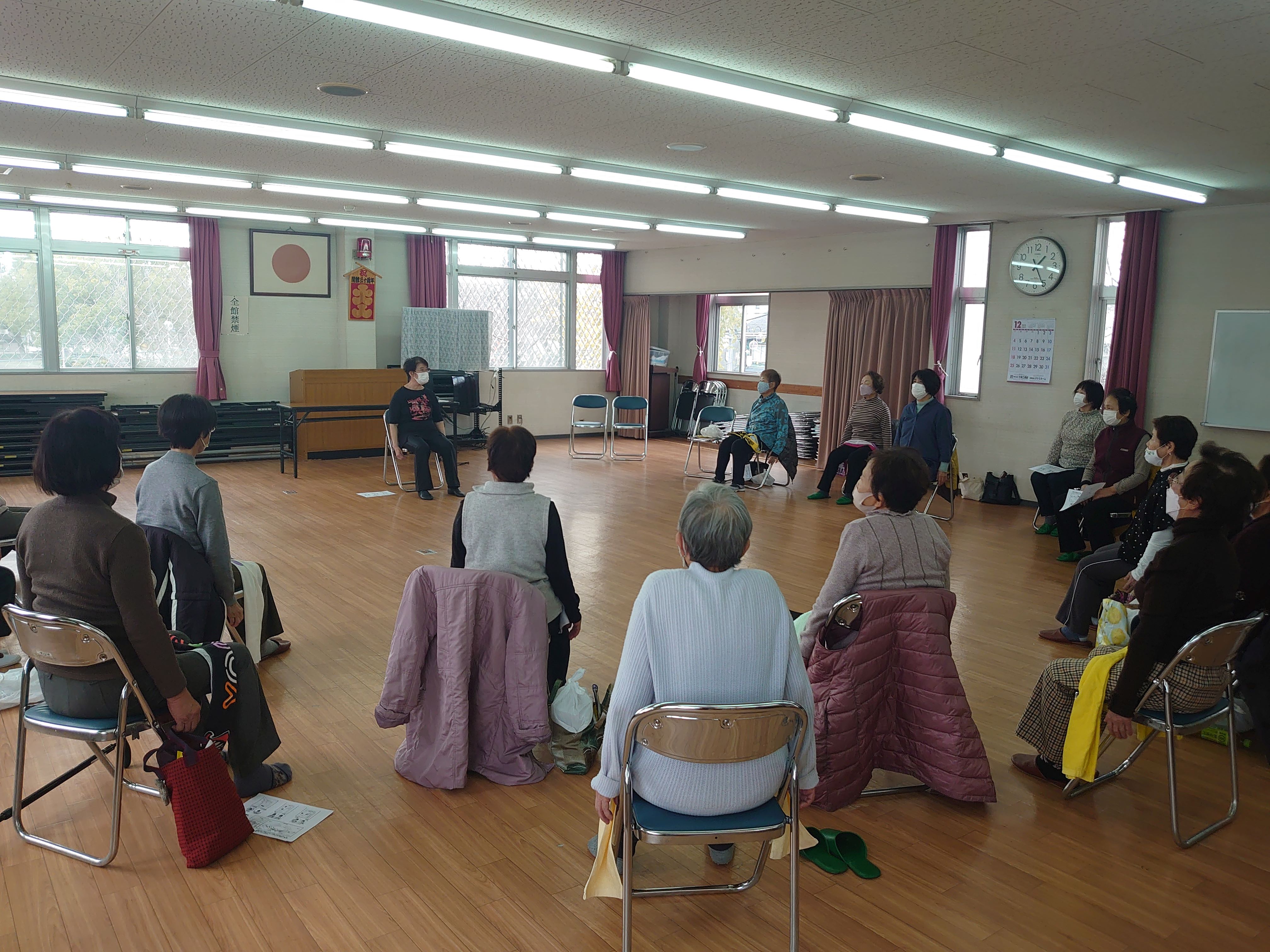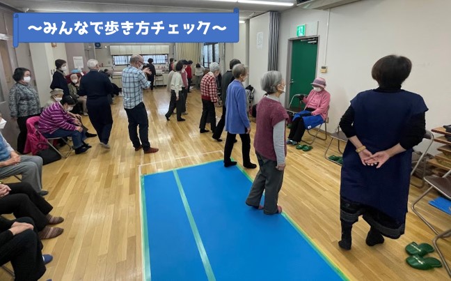 地域包括支援センターの方を講師に迎え、体操や歩行チェックなどが行われ、「歩き方を見直す良いきっかけになったわ〜」という声もありました。その後には福祉委員会によるビンゴゲームも行われ、久しぶりに集まったみんなで会話も弾みながら楽しい時間を過ごしました。