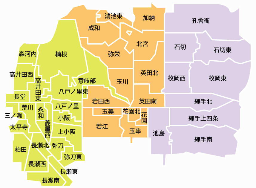 東大阪市社会福祉協議会では東地区拠点に2人、中地区拠点に2人、西地区拠点に3人、合わせて7人の地域担当(略称:COW(コミュティーワーカー))を配置し、各校区福祉委員会を中心に地域活動のサポートをさせて頂いています。