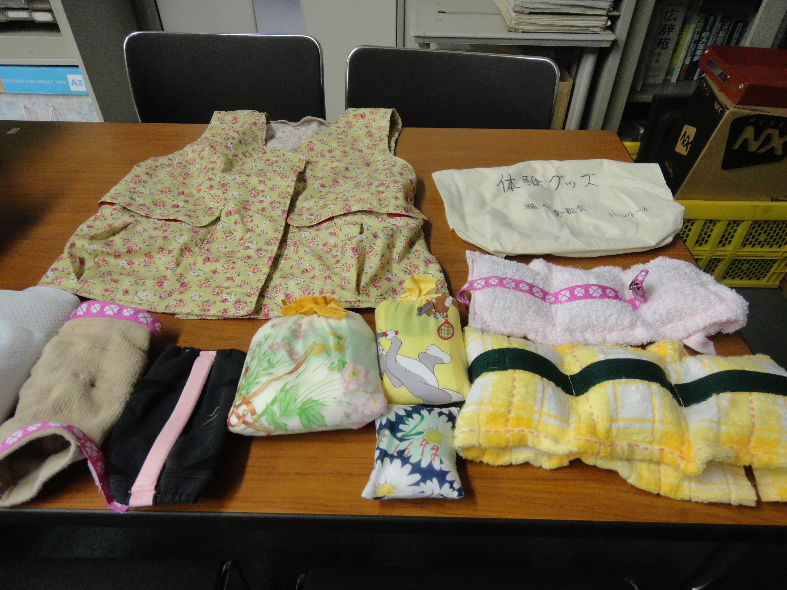 若江校区の女性部の皆様に、高齢者疑似体験の装具を手作りで作っていただきました。