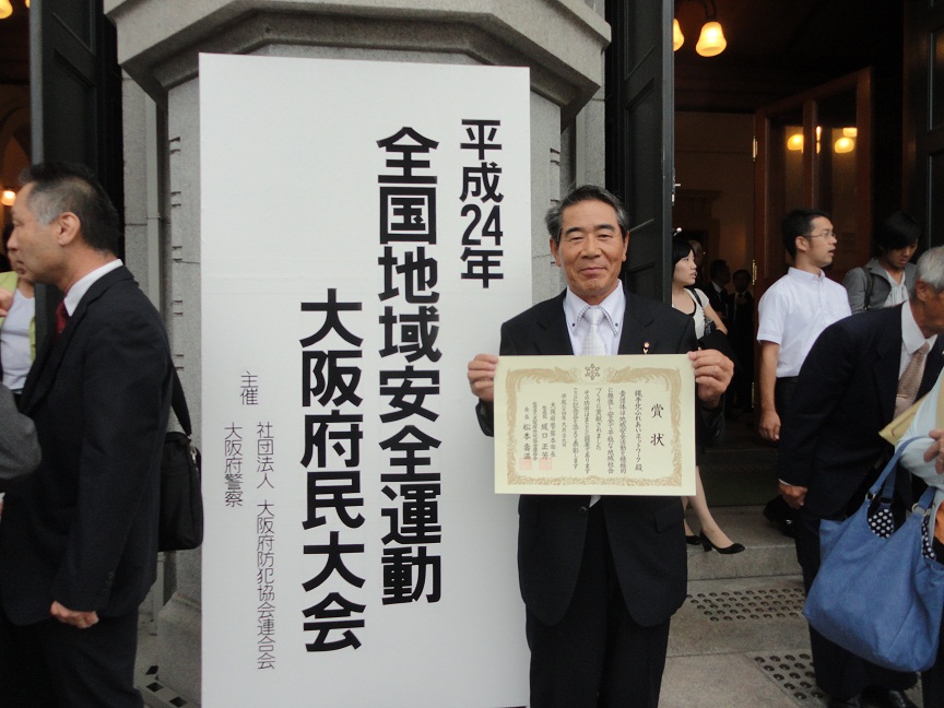 平成23年度 地域支え合い体制づくりモデル事業助成金を活用して作った”ふれあいマップ”が全国地域安全運動大阪府民大会で、功労ボランティア団体の代表として平成24年9月29日中央公会堂にて表彰されました。