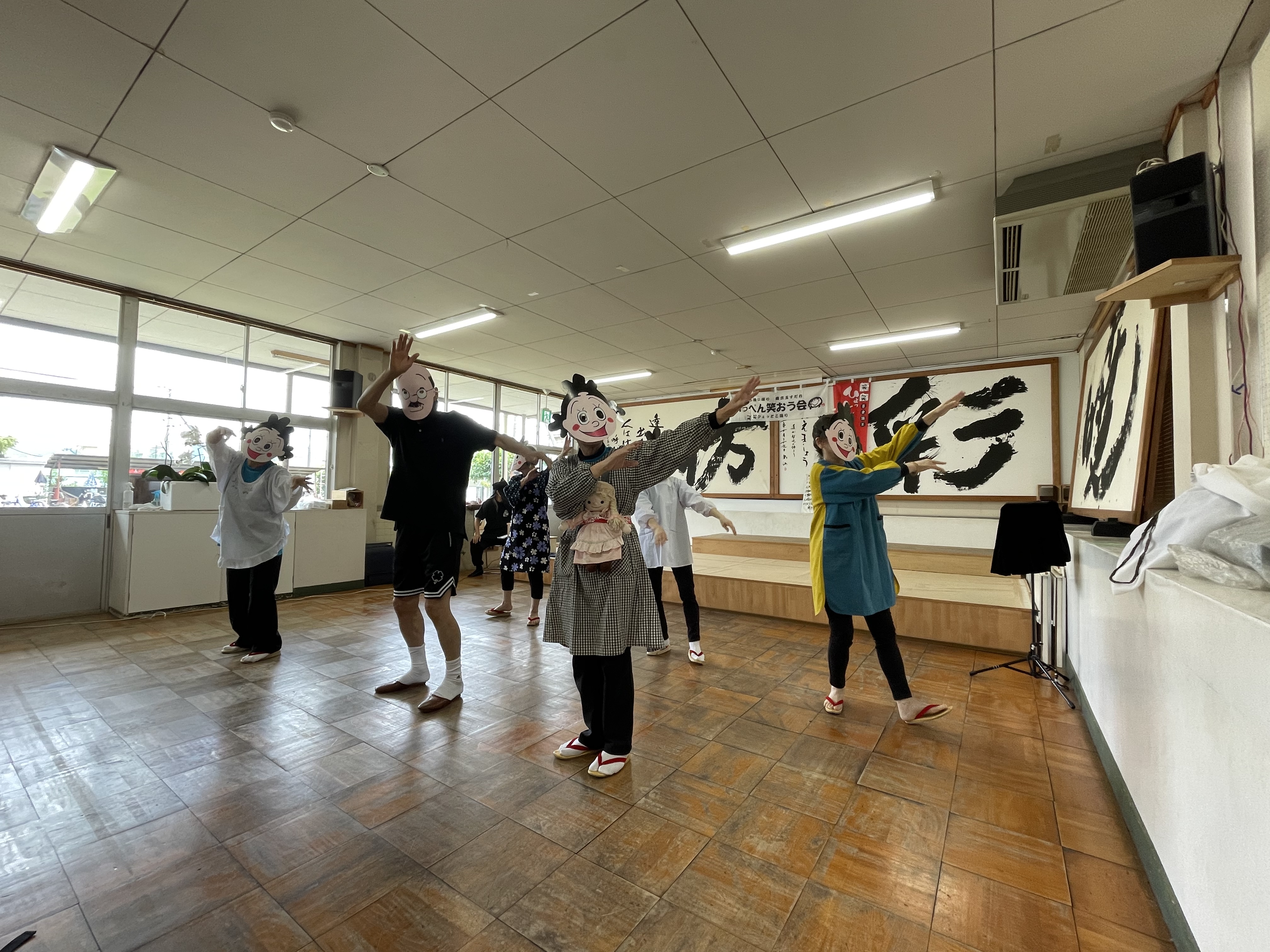 終了後、「いっぺん笑おう会」の皆さんによる、サザエさん体操や日向ひょっとこ踊り、腹話術など様々な楽しい演目を鑑賞しました☆彡皆さんの元気いっぱいの笑い声が響いていました(^^)☆
