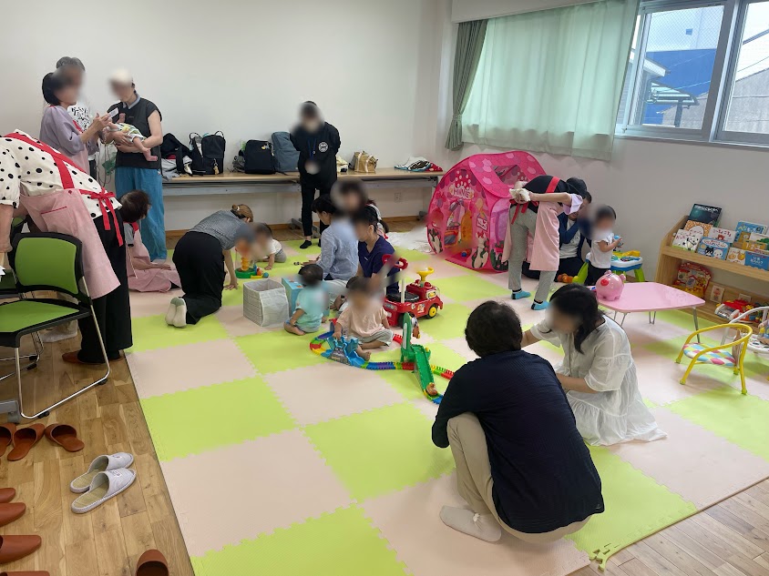 高井田東公民分館では毎月第4水曜AM10:00〜子育てサロン「なないろ広場」が開催されています。今月はいつもより多くの親子が遊びに来てくれました🌝以前も来てくれていたお母さんが新しく生まれた赤ちゃんを連れてきてくれる嬉しい再会もありました☺