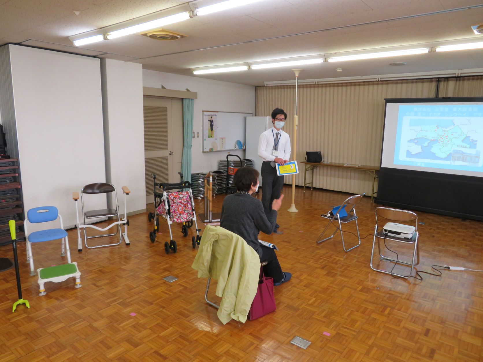 今回は「転ばぬ先の福祉用具」と題して、転倒予防や予防策としての福祉用具を展示し、三笑堂様にご講演いただきました。