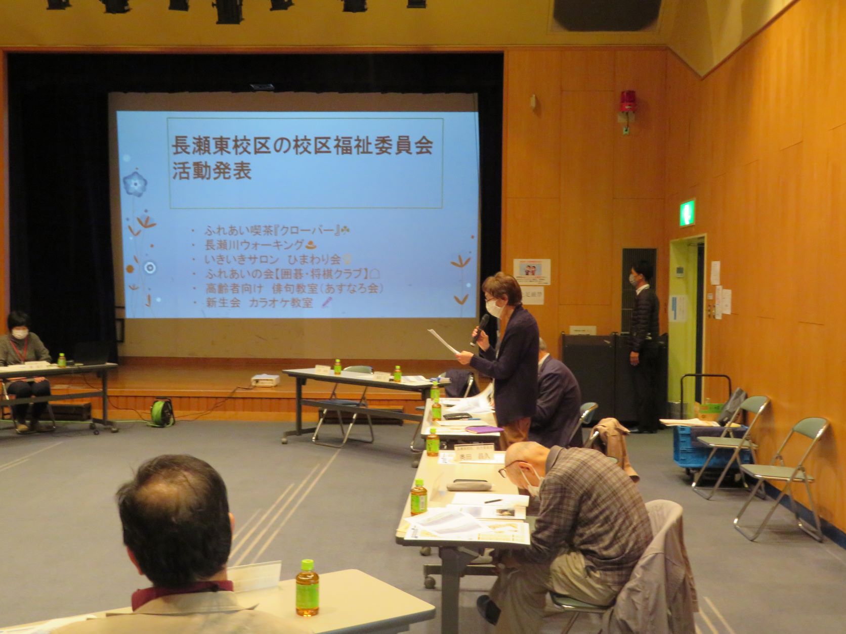 長瀬東校区と長瀬北校区で行われている地域活動と包括荒川で開催している介護予防教室についてそれぞれ紹介していただきました。地域の活動内容がとても分かりやすく、参加者の意欲に結びつく感想をいただきました。また今回完成した「金岡中学校区いきいきマップ」について、地図が大きくて見やすい等の感想をいただきました。