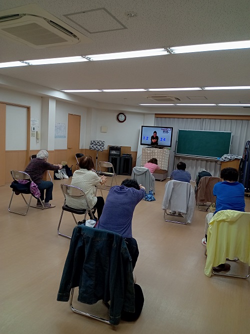 今月は朝のDVD体操と童謡のふるさとに合わせて行う体操をしました。