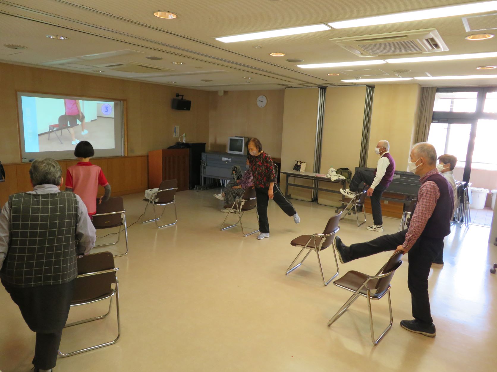 令和3年11月2日(火)に近江堂リージョンセンターにて介護予防教室(第1部/9:30〜、第2部/10:40〜)を開催しました。