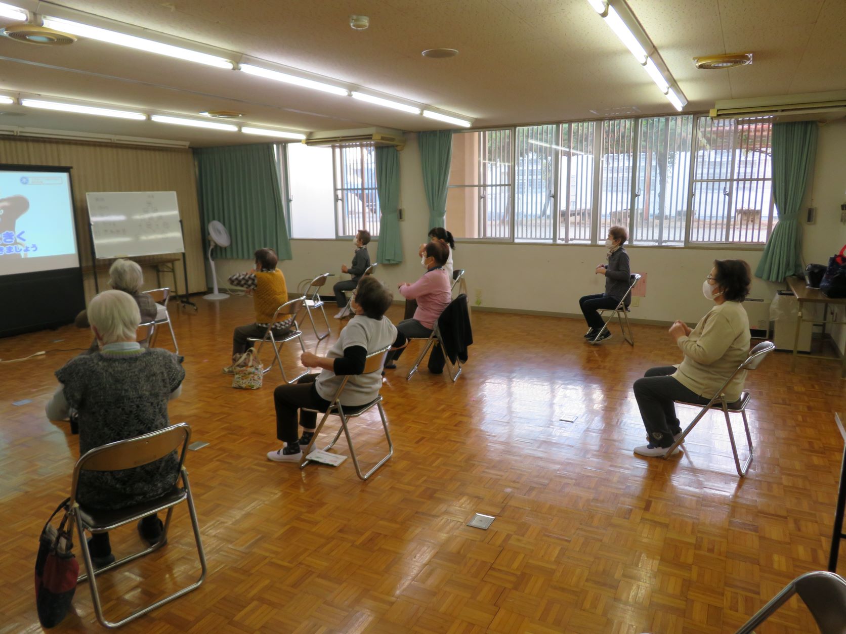 令和3年10月7日(木)に長瀬北公民分館にて介護予防教室(第1部/13:30〜、第2部/14:40〜)を開催しました。