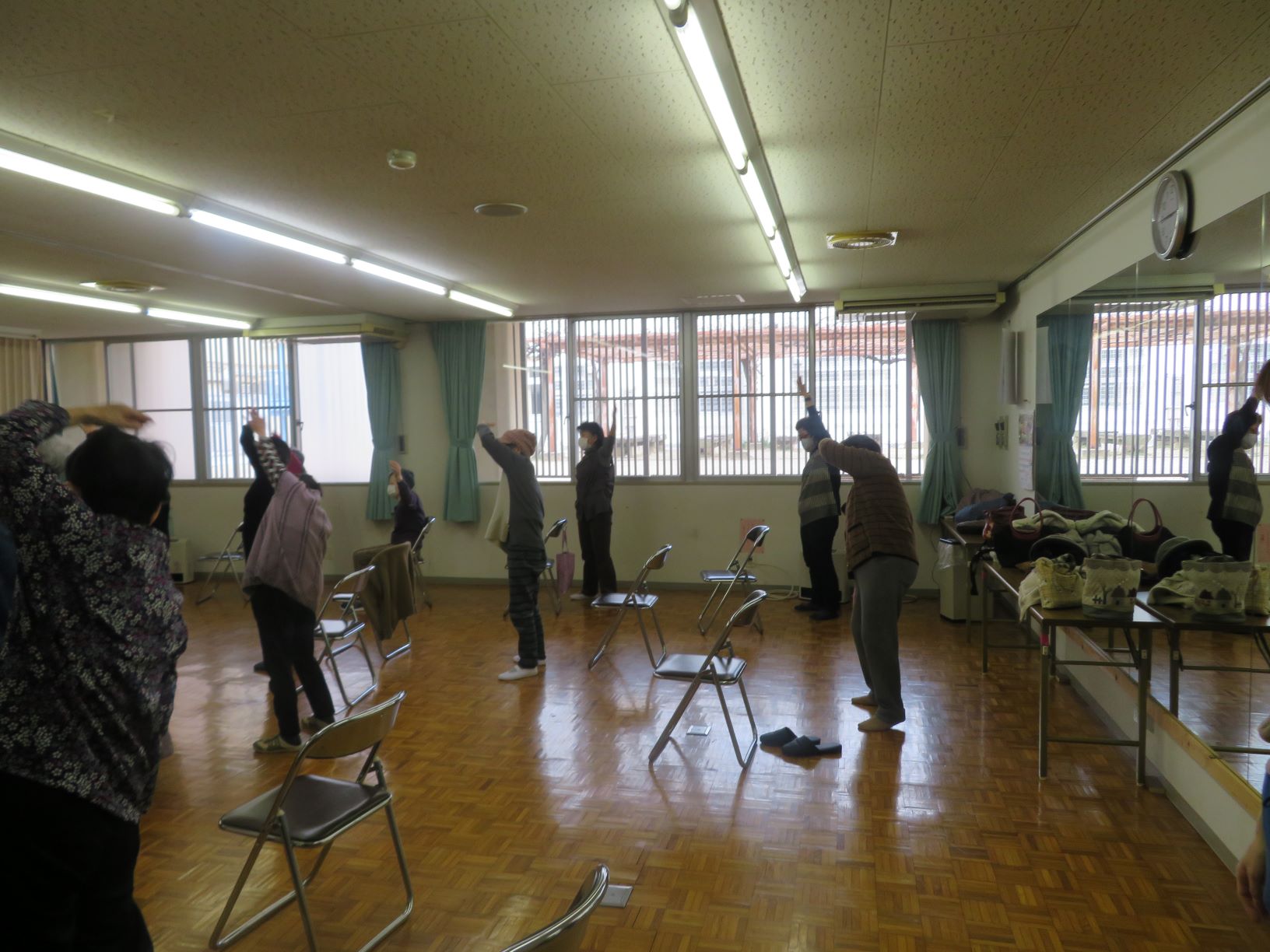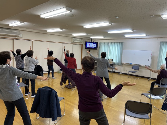 寒さがまだまだ強い時期でしたが、今回は演歌に合わせて楽しく体操に身体をぽかぽかにすることが出来ました。
